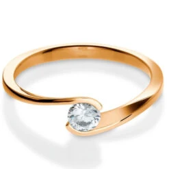 Bague solitaire en or rose 18 carats et diamant.