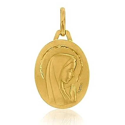 Cette médaille de forme ovale au fini satiné est en Or Jaune 750/1000.